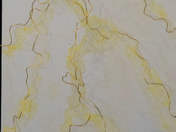 Whenever I was angry I would take my frustration out on the wire, bending it into abstract forms that matched my mood. This created a flow on the canvas that I then mimicked with pastel, paint, or other pigments.